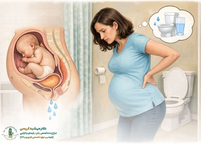 • تغير في وضع المثانة: أثناء الحمل، يتغير وضع المثانة قليلًا وتصبح أكثر حساسية، ولهذا السبب حتى مع وجود كمية قليلة من البول، يكون هناك شعور بالإخراج.